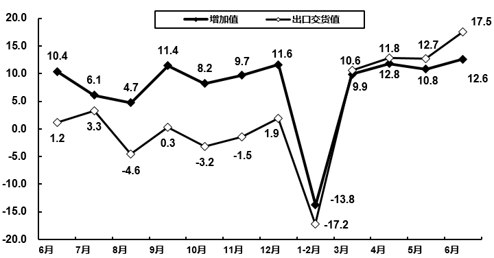 1-6月,規模以上電子信息制造業出口交貨值同比增長4.0%,較去年同期下降2.4個百分點。6月份,規模以上電子信息制造業出口交貨值同比增長17.5%,比去年同期加快16.3個百分點。
